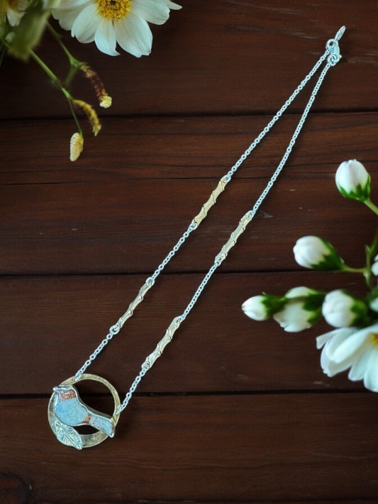 Dainty Dendritic Agate Oval Pendant with Rose-Gold Bail