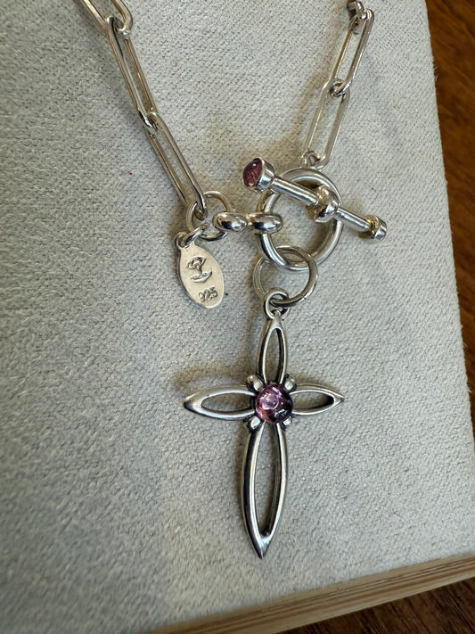 Tourmaline Petite Cross/Toggle Paperclip Necklace