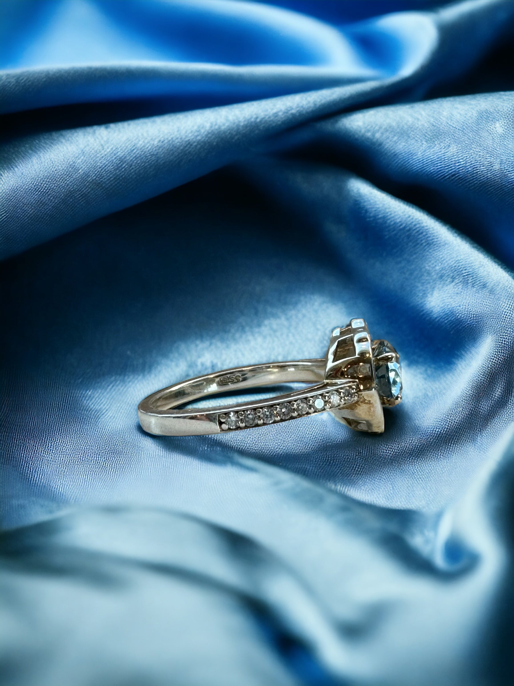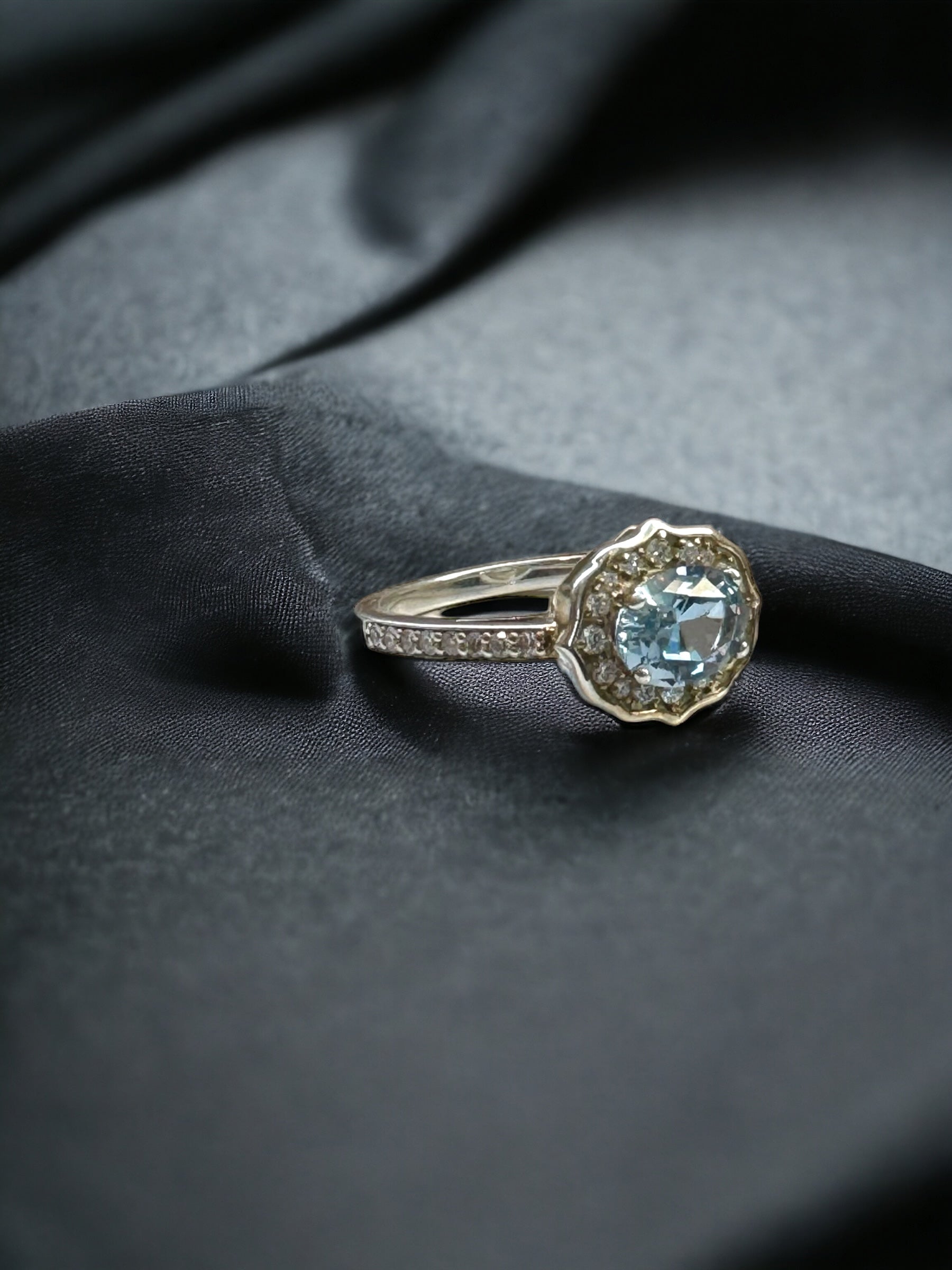 Aquamarine and Diamond Ring in Sterling Silver