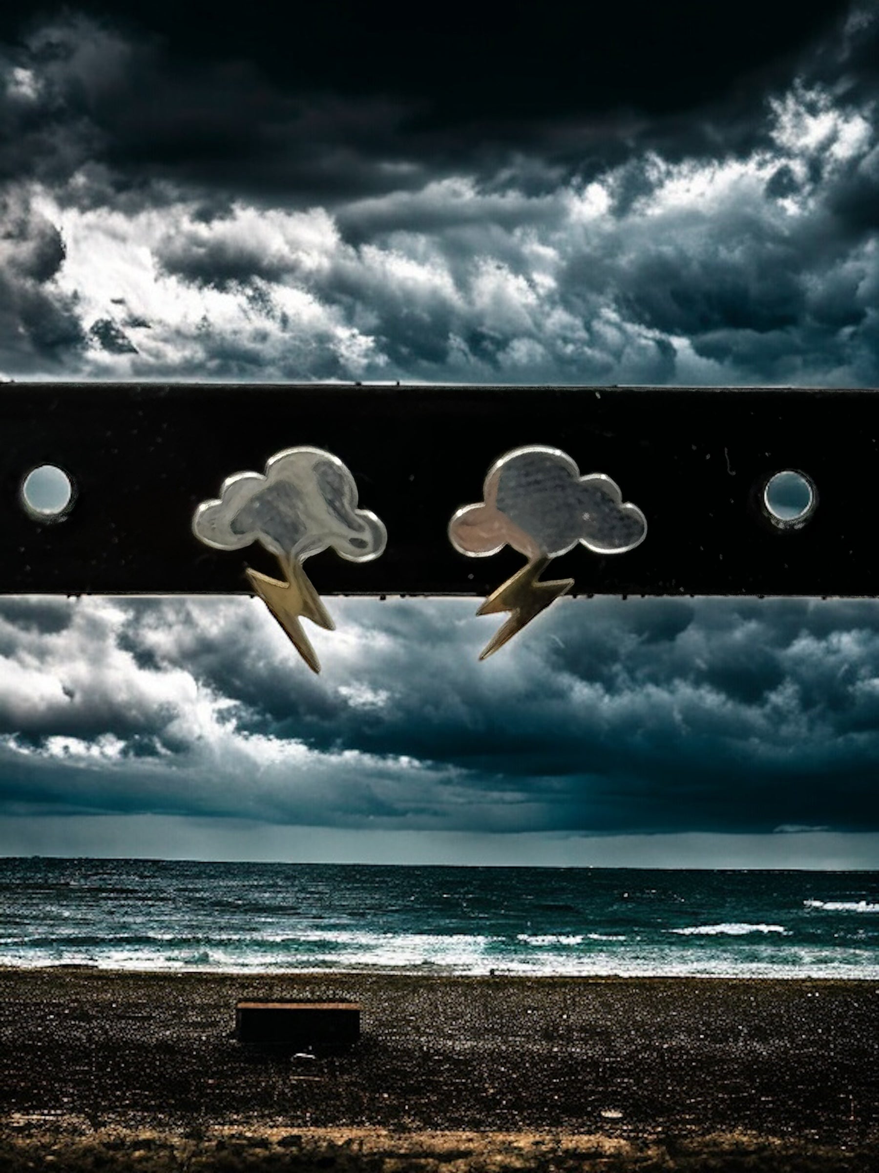 Stand out with these electrifying Thunderstorm Earrings! Sterling silver clouds and 24k yellow gold lightning bolts will make any outfit shine.