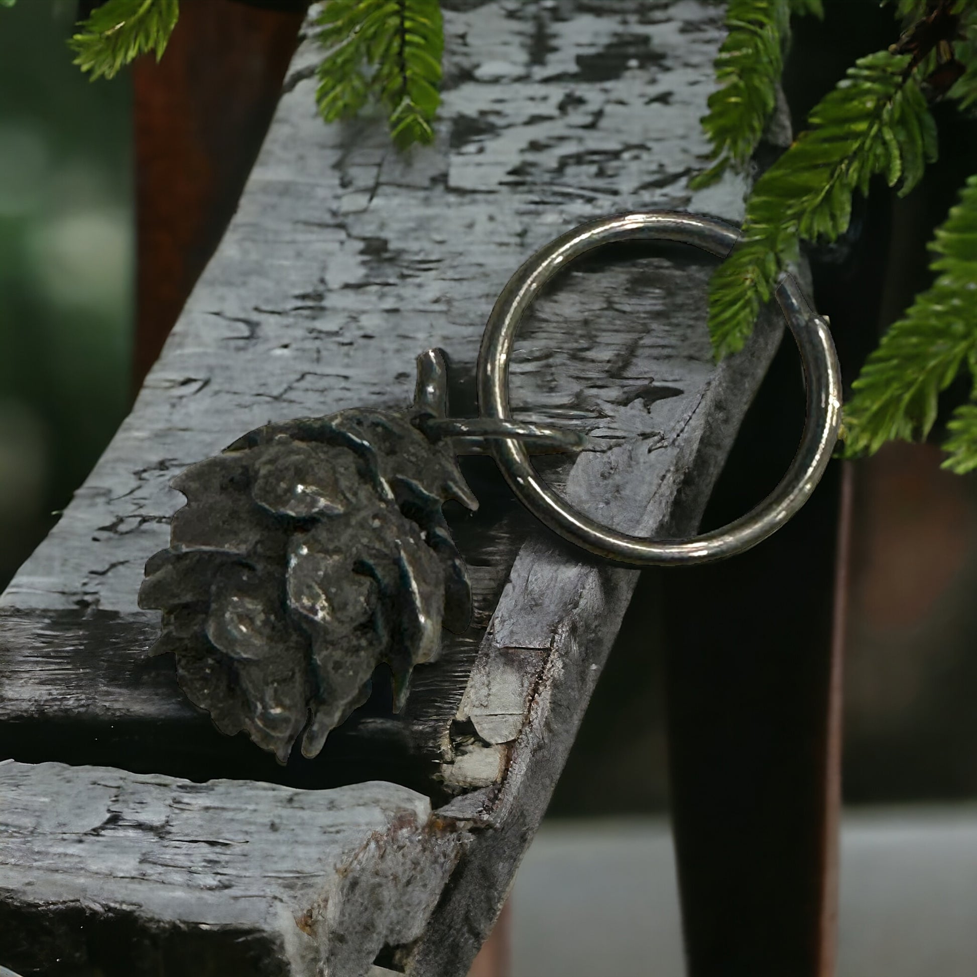 Crafted from high-quality sterling silver, this keyring features a heavy silver pinecone, directly cast from a genuine pinecone, on a convenient sterling silver split-ring. Keep your keys securely by your side with this elegant and functional accessory. Contact us for more fast creations or to order your own special keyring centerpiece.