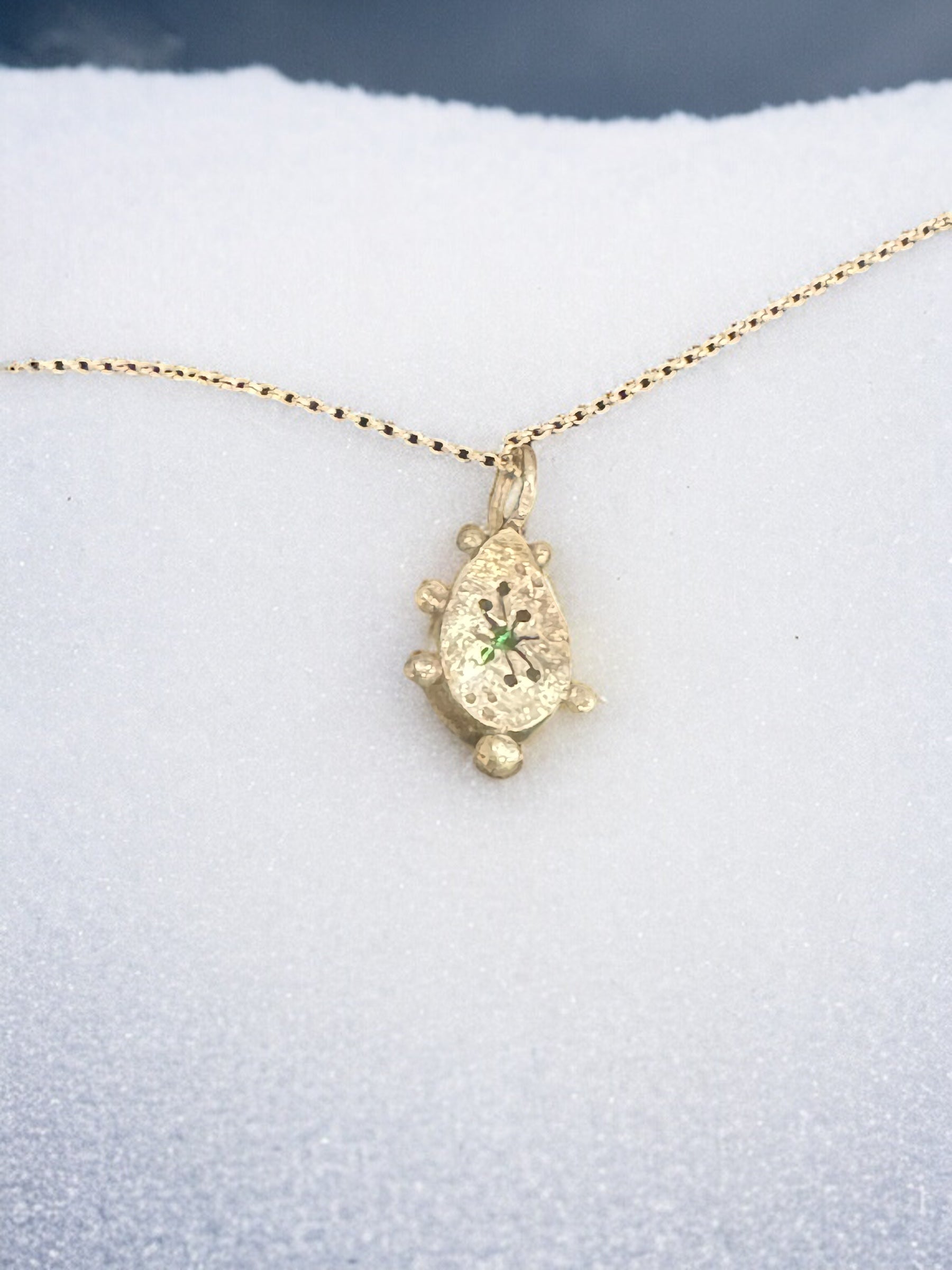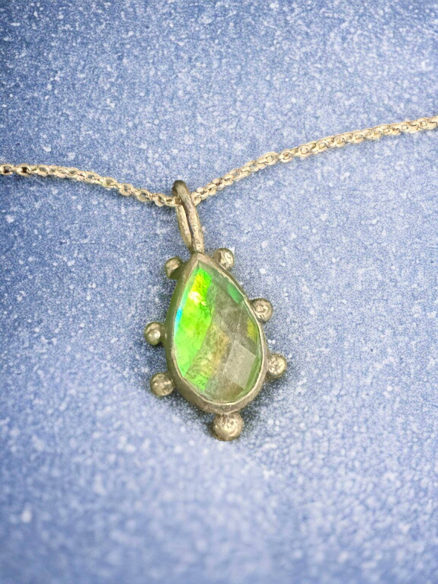 Expertly set in a sterling silver bezel with a snowflake on the back, this topaz pendant changes hue with different lighting. Ethereal and captivating, this pendant will elevate any outfit.