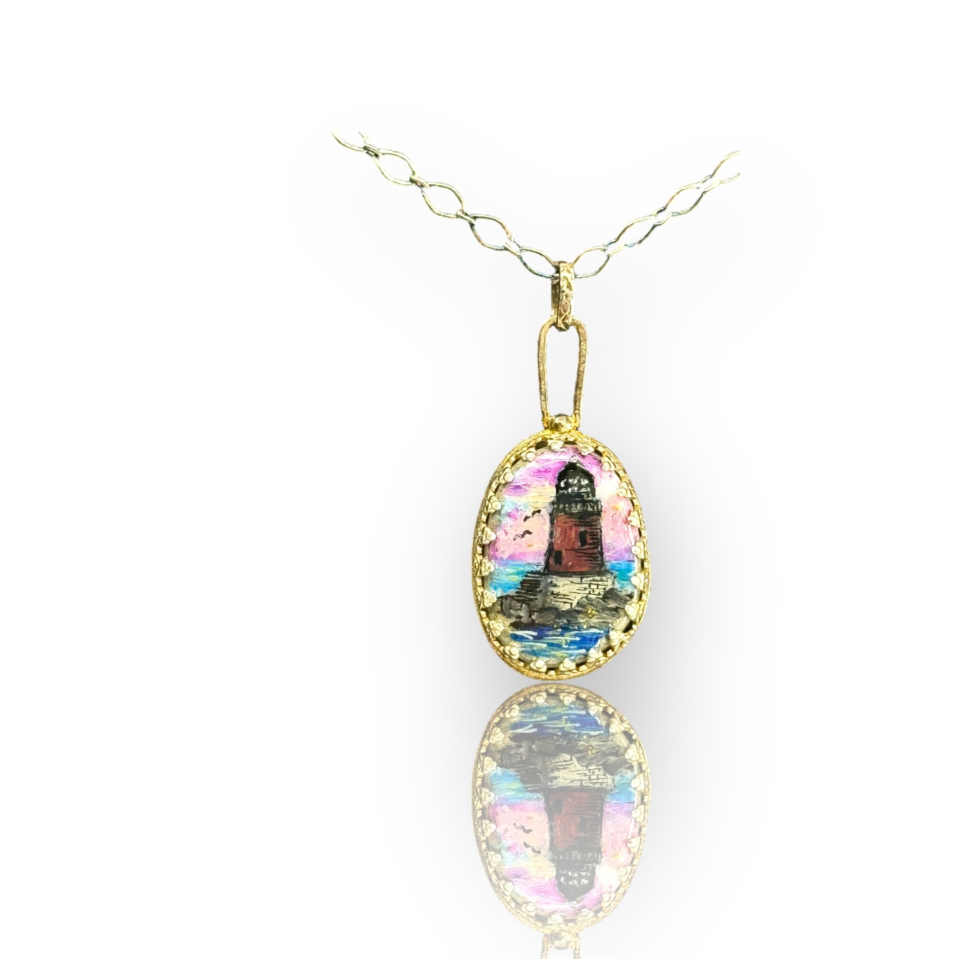 Indulge in the intricate and exquisite miniature paintings that encapsulate the picturesque Delaware coast. These stunning masterpieces are crafted with enamel-based paint and protected with a layer of epoxy resin, beautifully adorned in sterling silver. Custom pieces are available upon request, featuring your desired image or a cherished beach discovery.