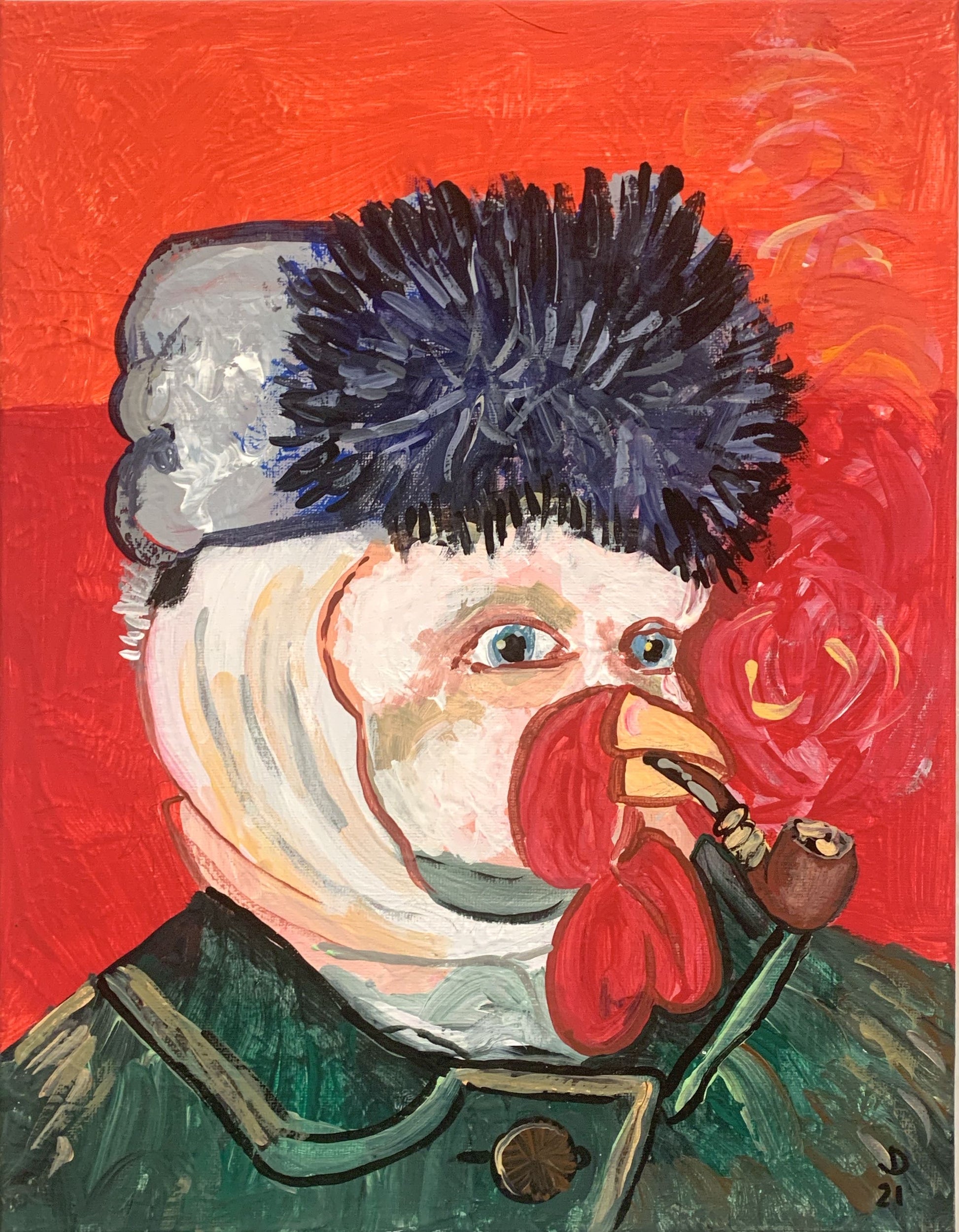 “Self Portrait as a Chicken with Bandaged Ear” Painting