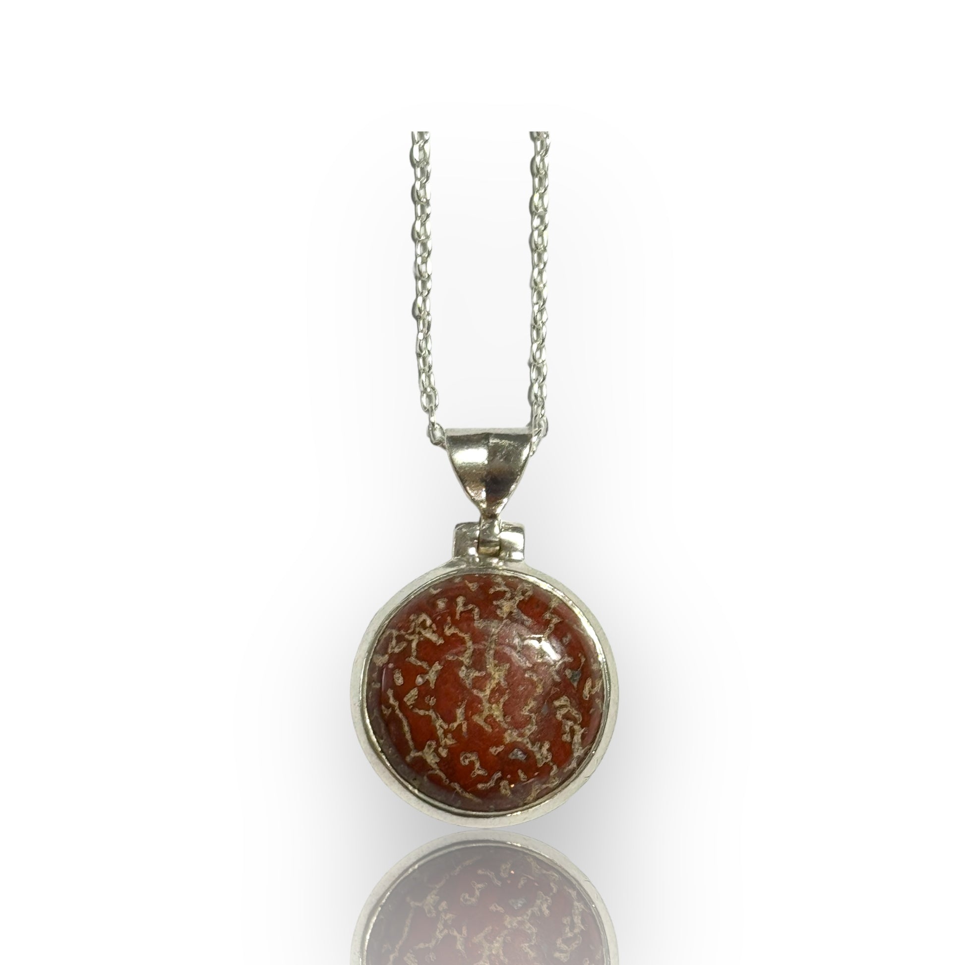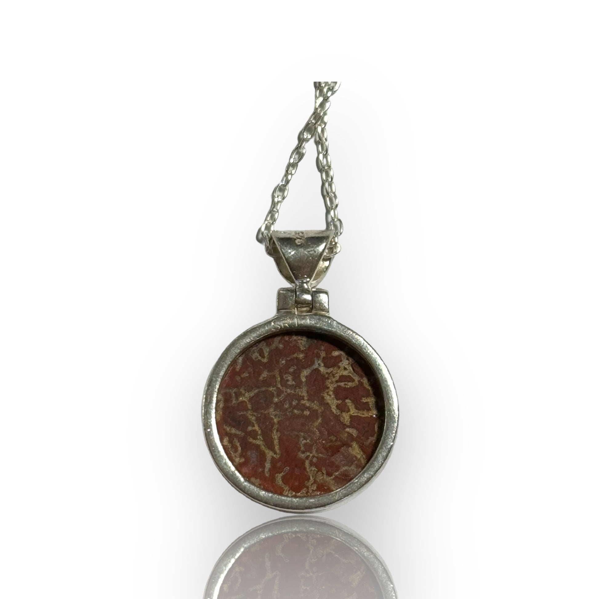 This exquisite Dinosaur Bone Pendant showcases a genuine, fossilized bone set in an elegant sterling bezel with an open-back design.
