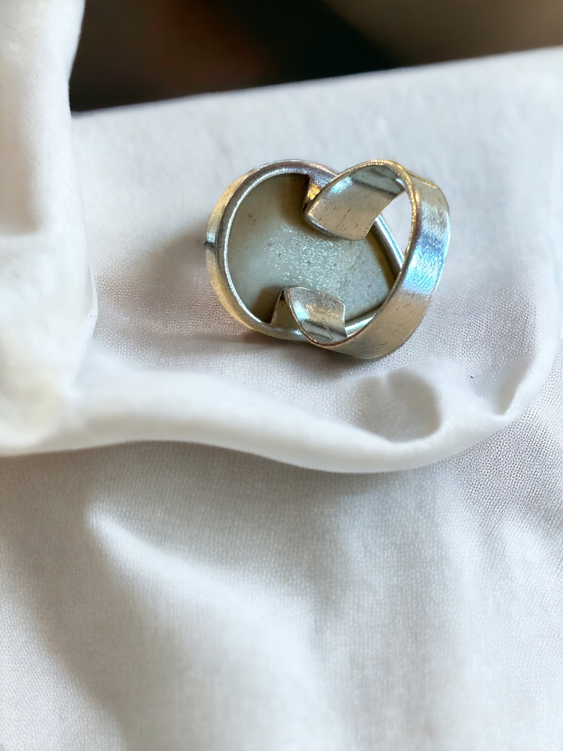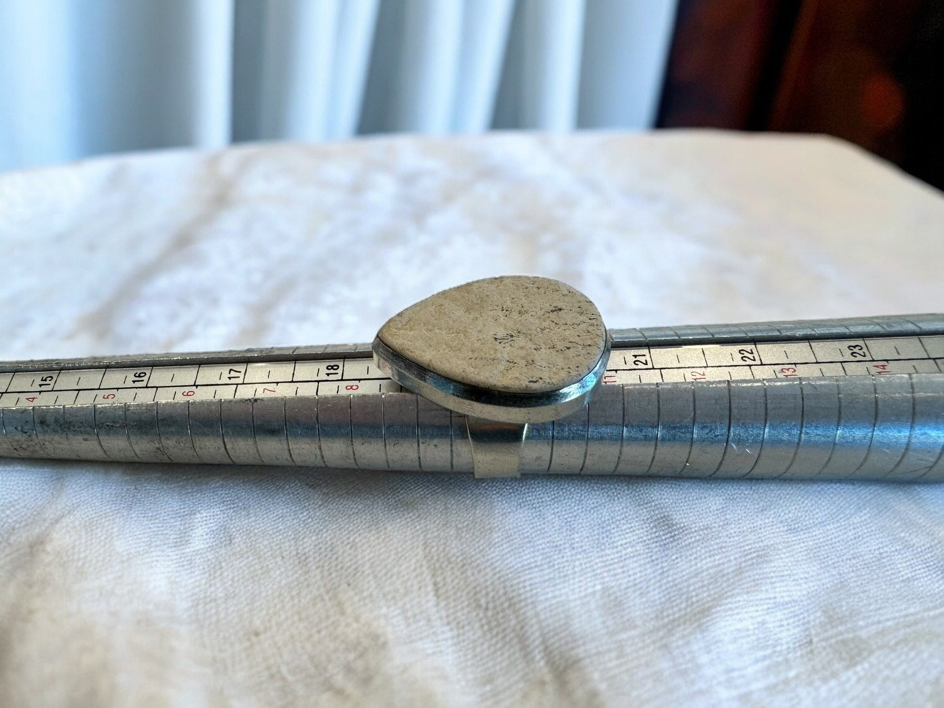 The Large Dendrite Ring features elegant fern-like structures that contrast beautifully with the warm earthy hues of the matrix stone. As the stone is unpolished, it provides a lovely, matte finish and maintains its natural appearance. Size US 10.