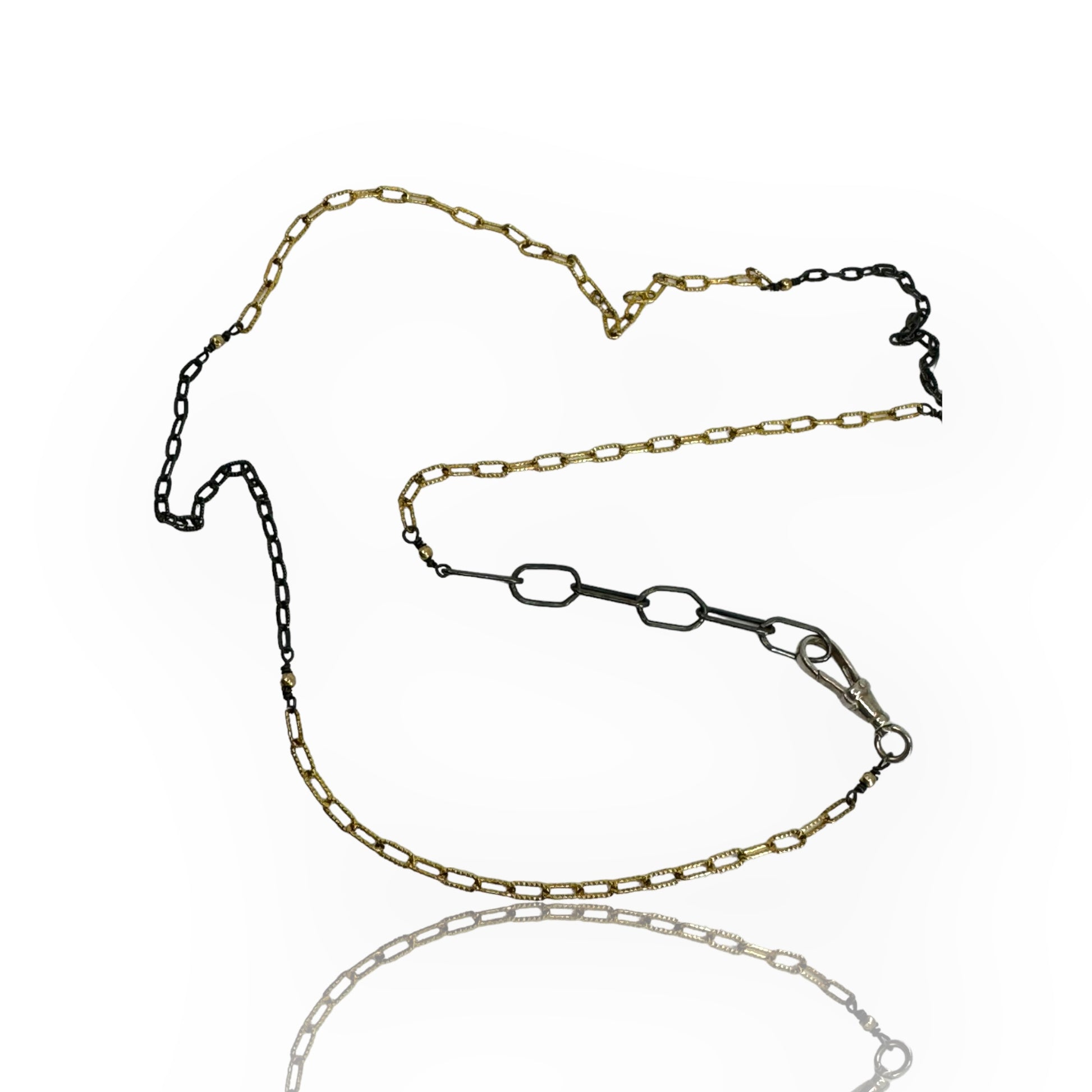 This unique and versatile chain is made from a combination of 14/20gf and sterling materials, complete with a sterling swivel push clasp for added convenience and style.