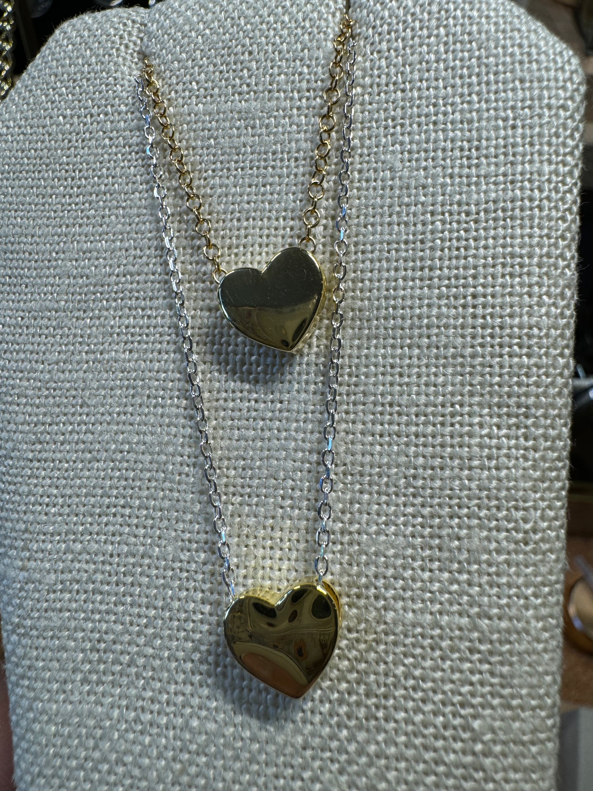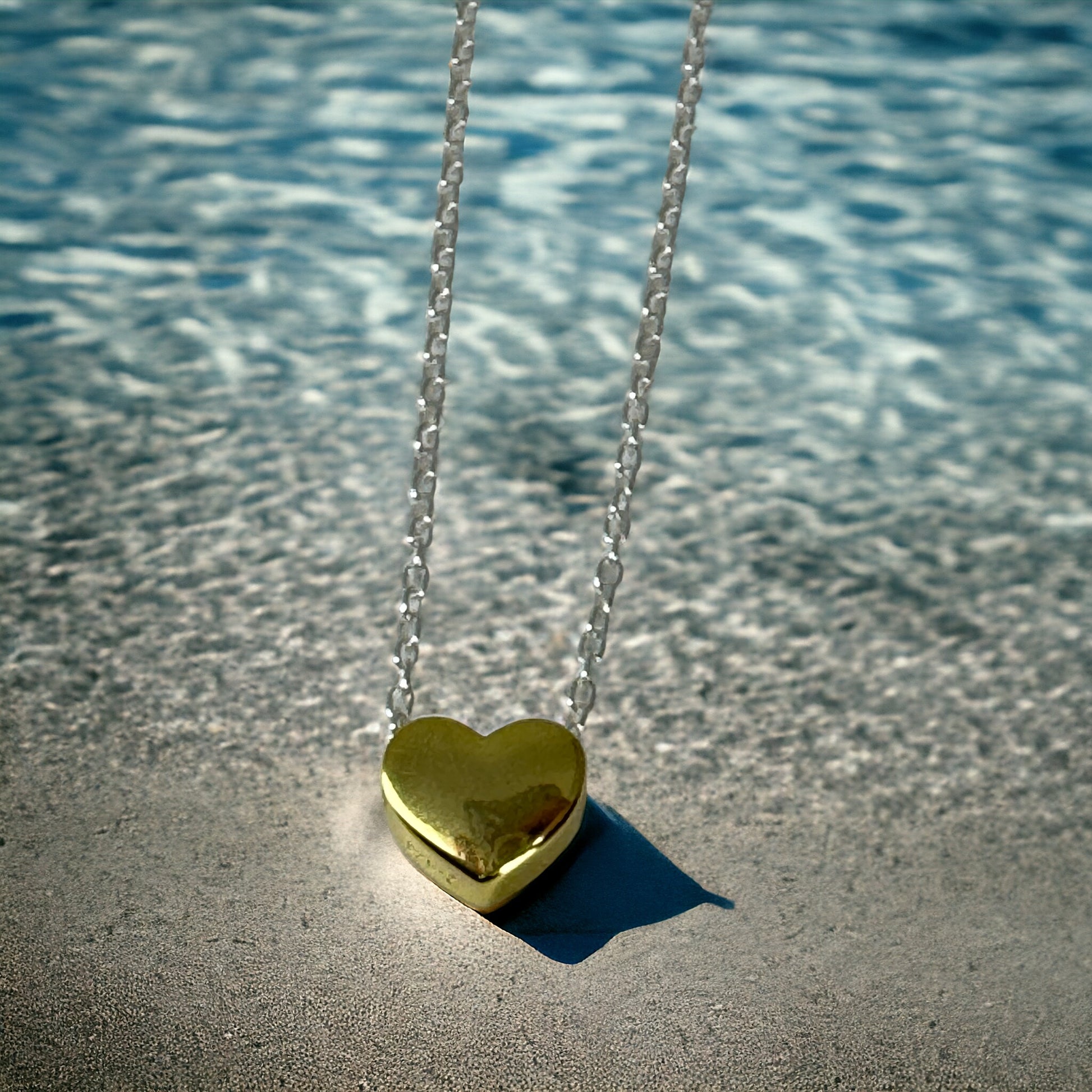 Make a statement with our 24k heavy gold plated sterling silver heart necklace. This playful piece comes on a sterling silver chain that can be adjusted from 16 to 20 inches. Dress it up or down for a versatile and stylish look.