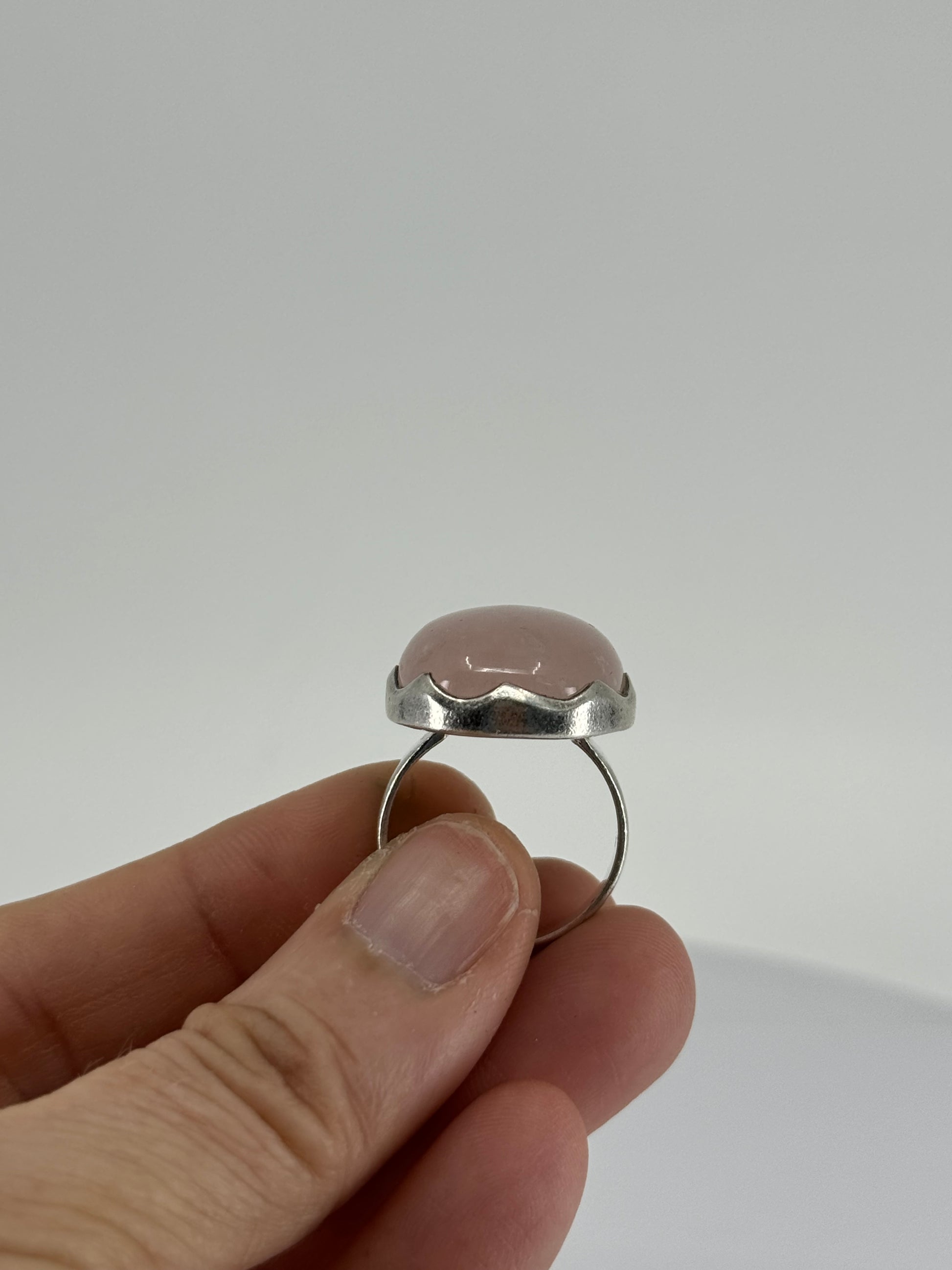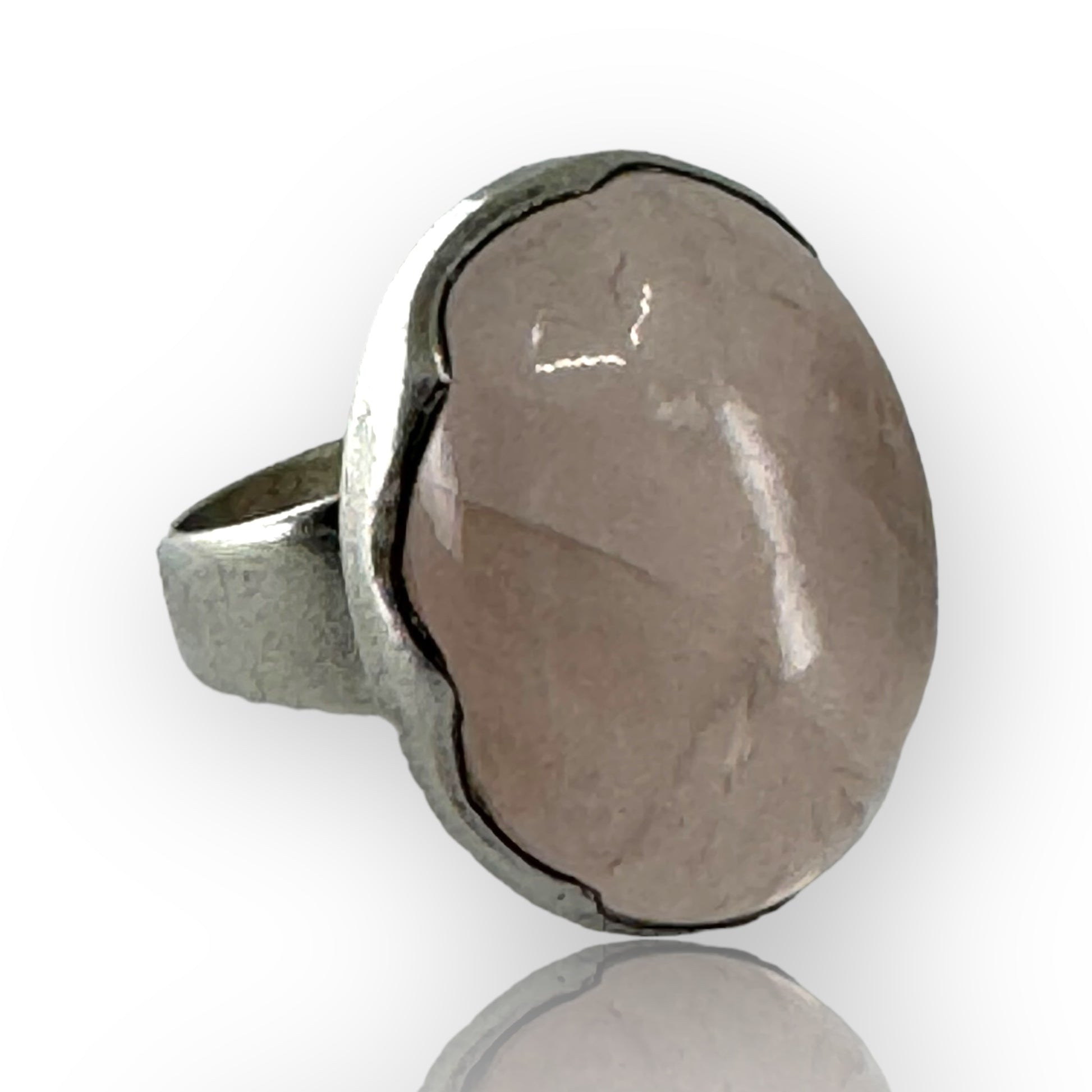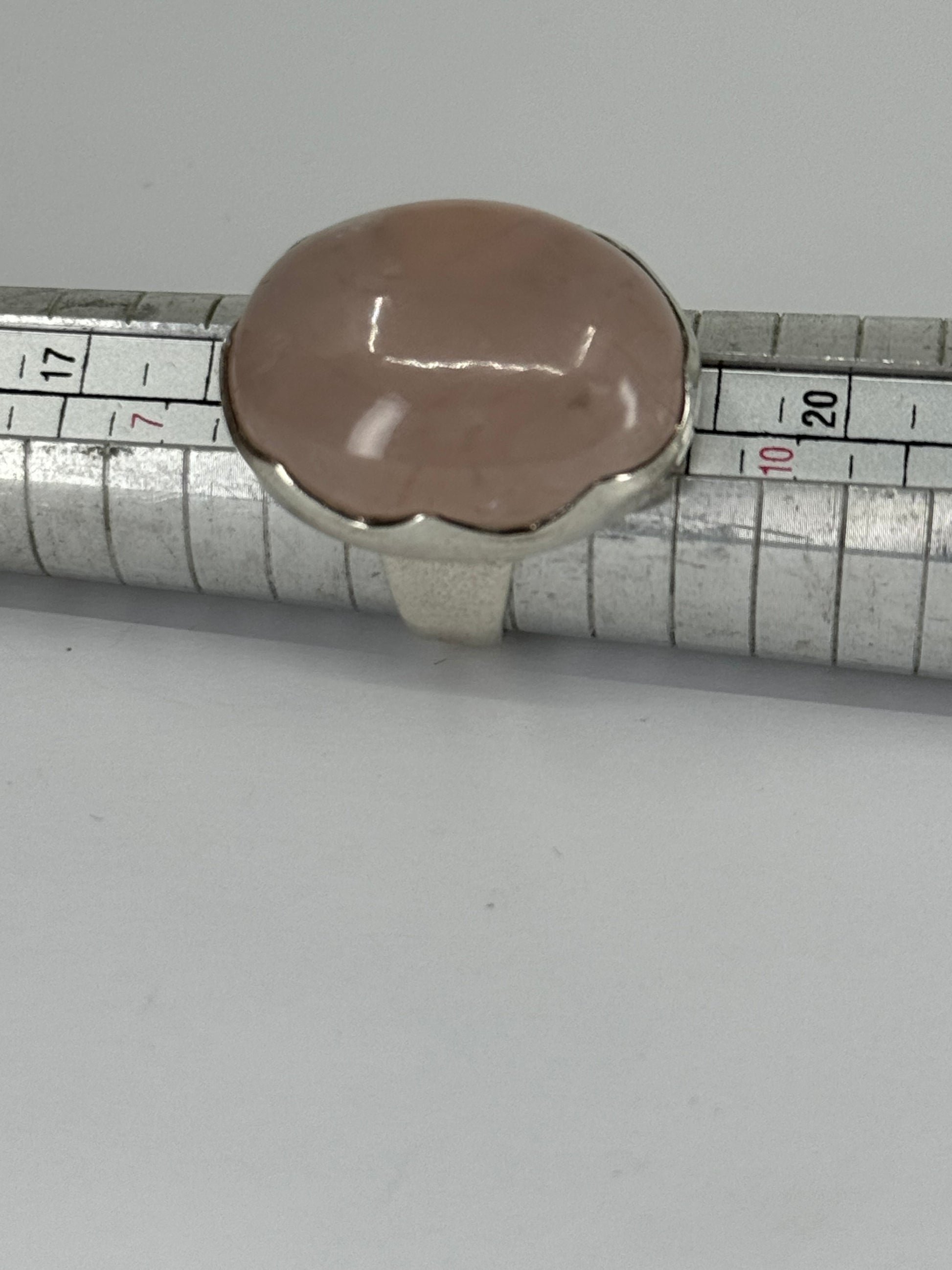 Expertly crafted, this exquisite rose quartz ring boasts a generous size, providing undeniable luxury and elegance to any outfit. Approximately US size 8.5.