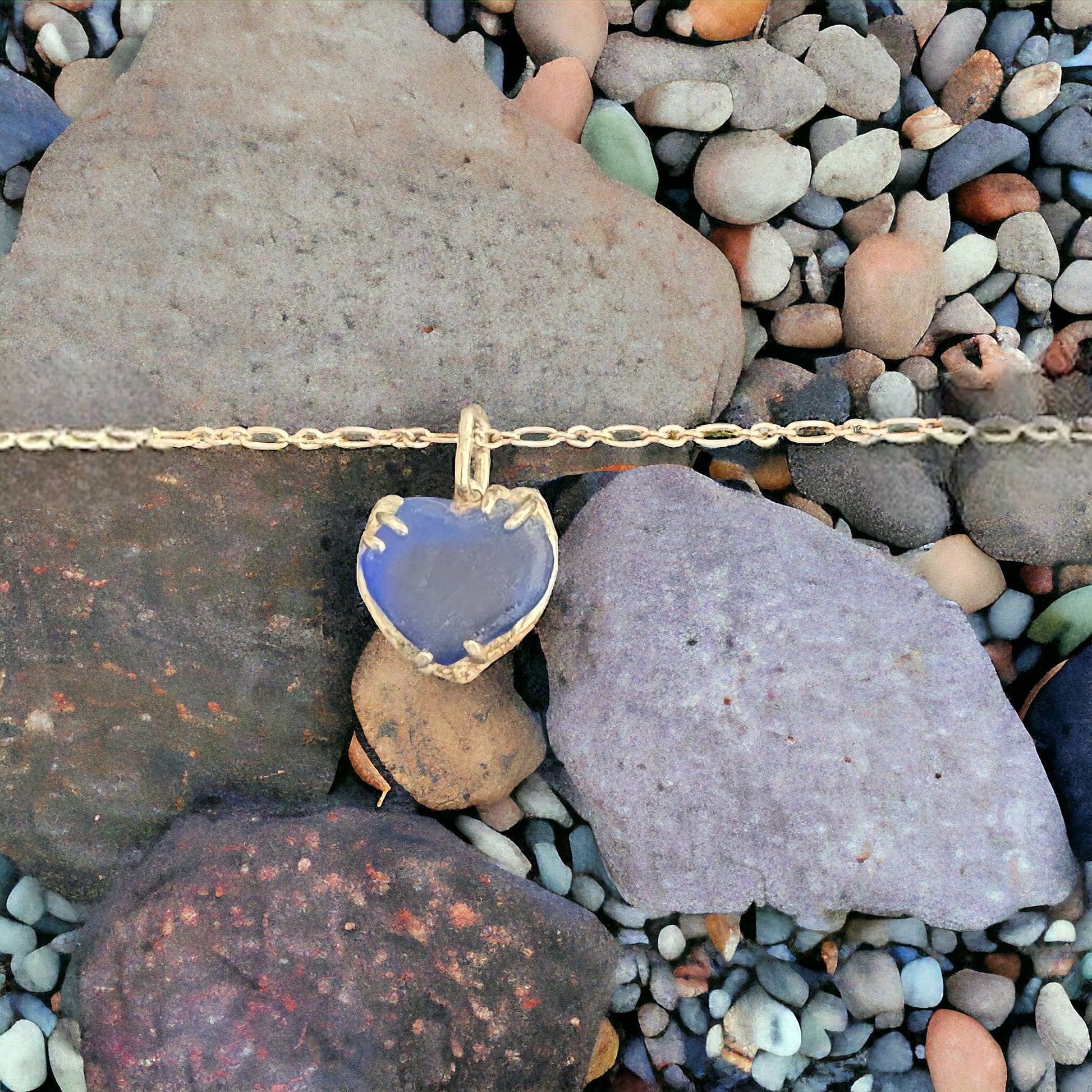Delicate and ethereal, this dark blue heart charm is set in luxurious sterling silver, an exquisite find from the Atlantic's shores.