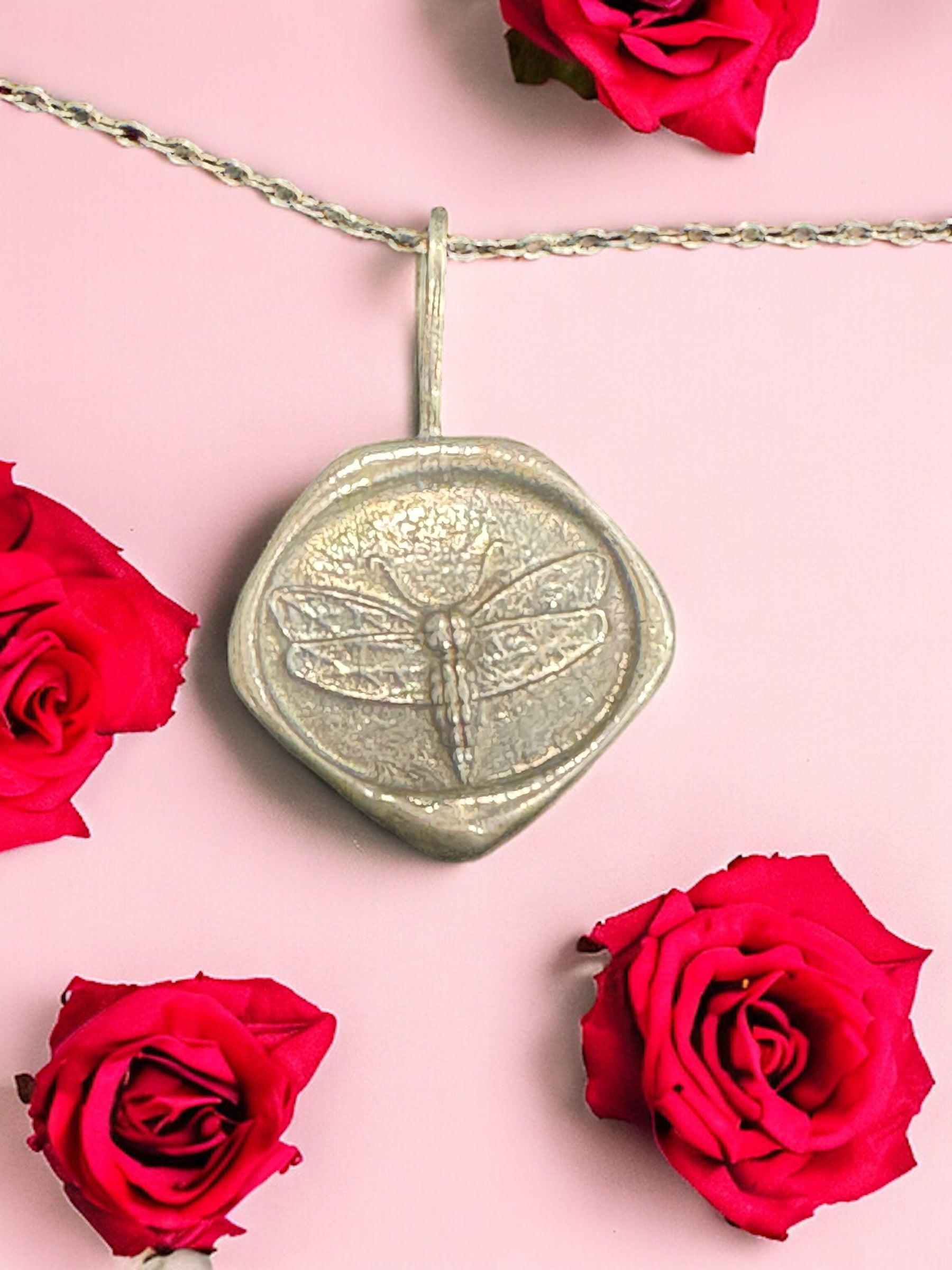 Expertly cast in pure sterling silver, this wax seal proudly showcases a striking dragonfly emblem.