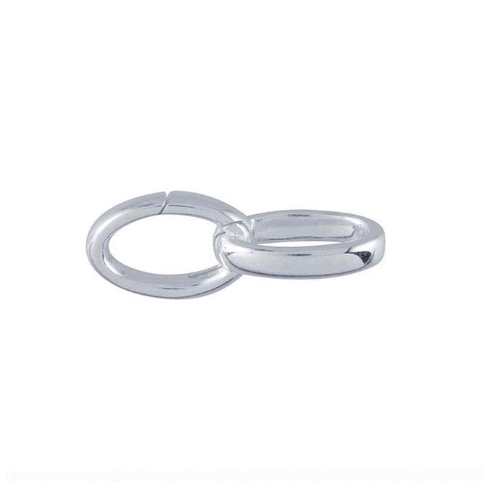 These sterling silver links feature two oval rings joined together at a right angle; one solid closed ring and one with a push-hinge mechanism. Ideal for an endlessly changeable charm bracelet. Because of the hinged opening, add-ons are a snap to change, making it easy to change in seconds to complement any look from day-to-day or from work-day to evening-out. Single links are also great for adding pendants, drops or dangles to necklaces.