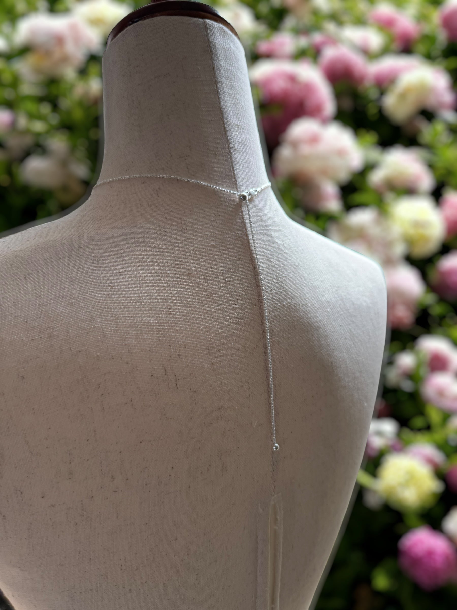 Sterling silver filigree bezel, sterling silver adjustable chain.