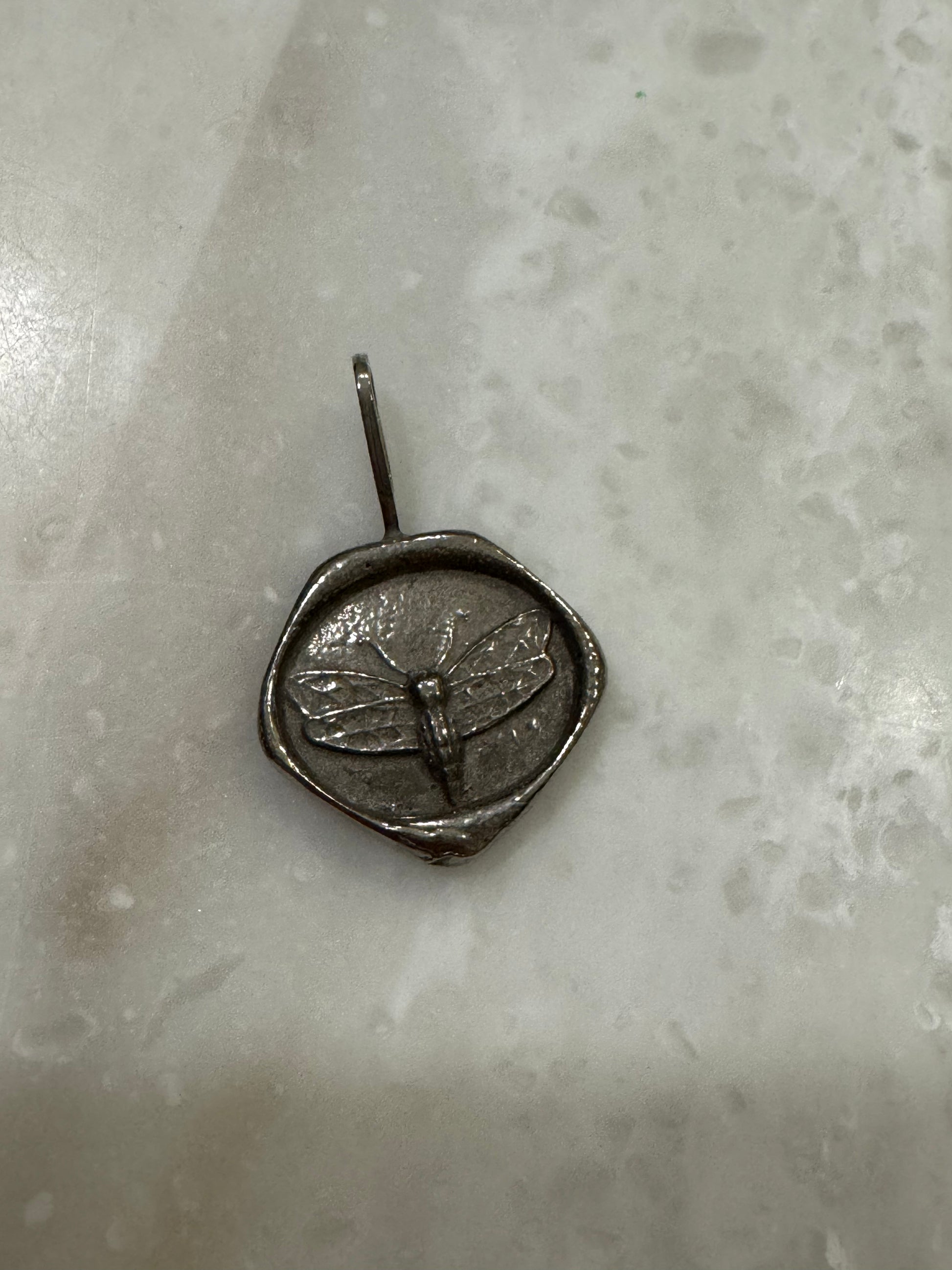 White Bronze Dragonfly Seal on Stainless Steel Chain