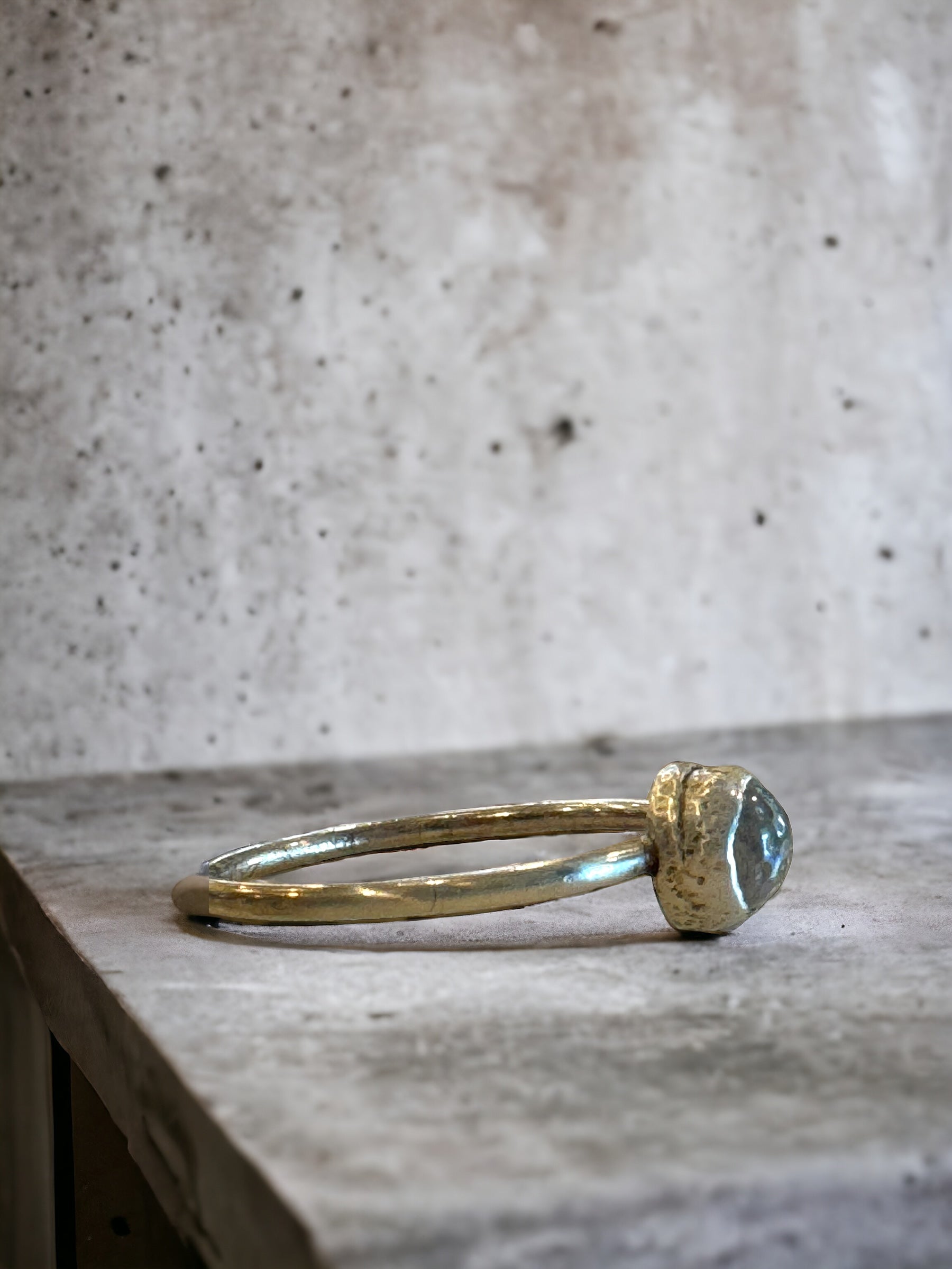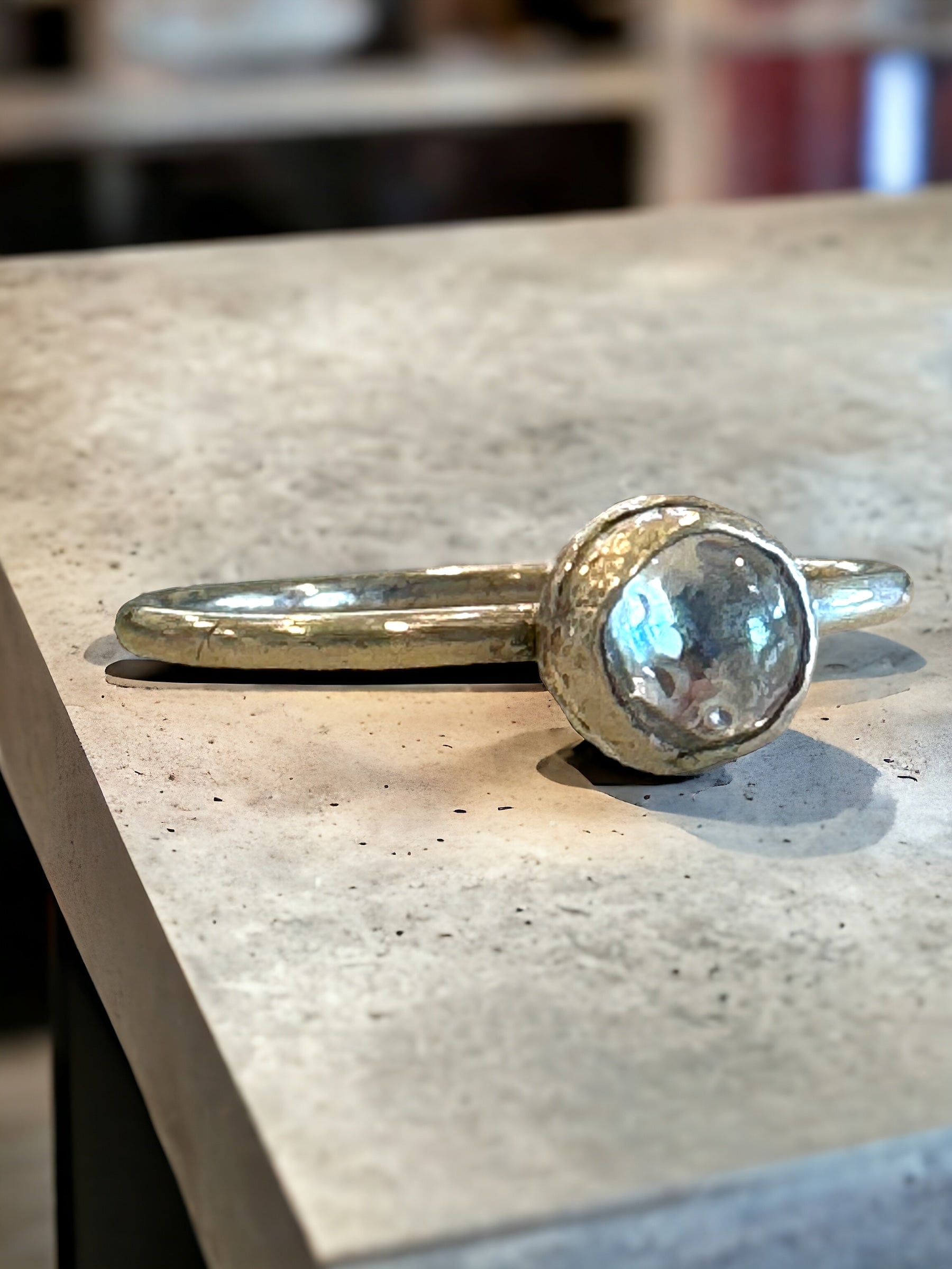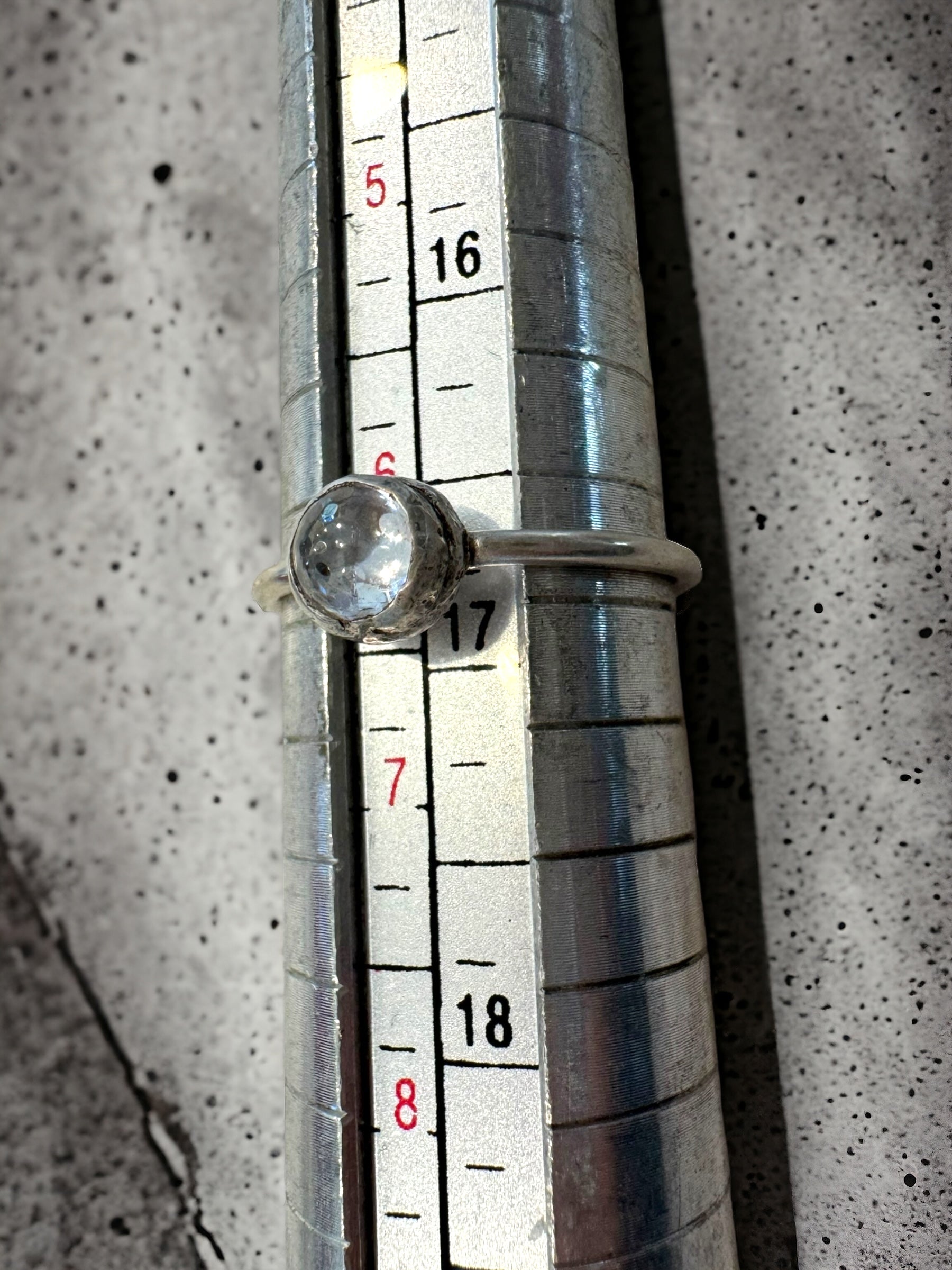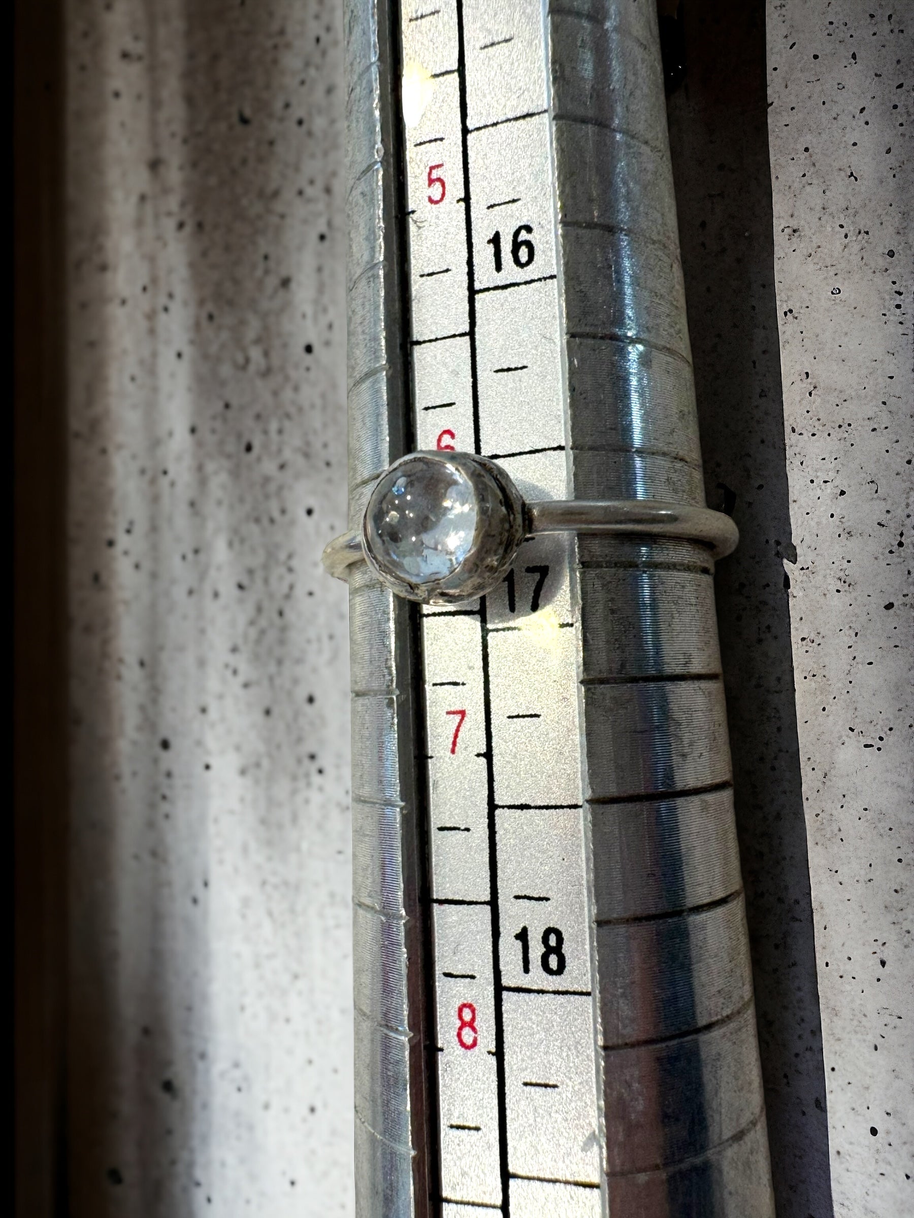 Bubble cut white topaz cabochon set in sterling silver. US size 6.25 but can be sized.